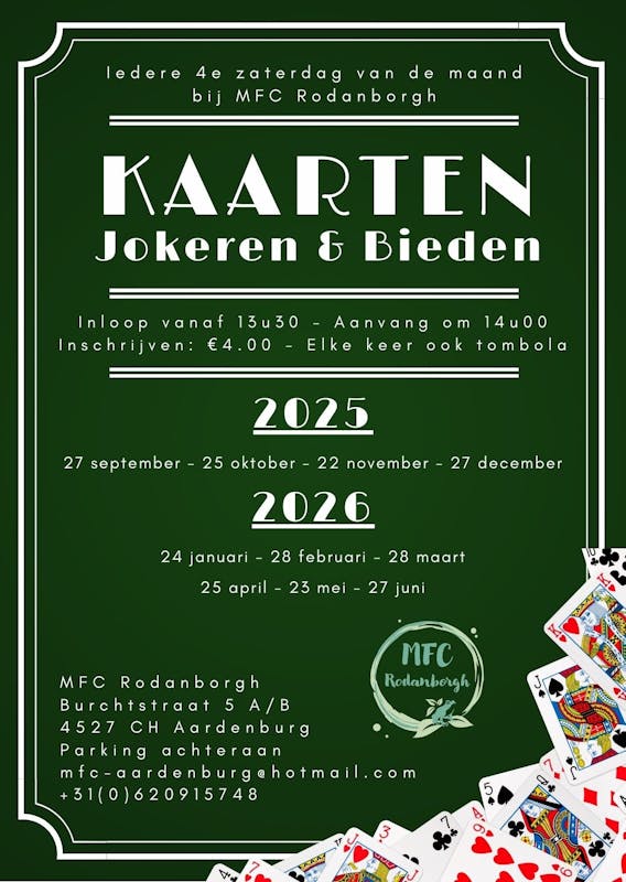 Maandelijks op de 4de zaterdag tot en met 25 april 2026