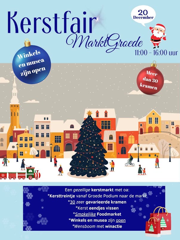 Op 20 december wordt het marktplein in Groede weer omgetoverd in een winters warme kerstmarkt met de leukste kramen, live muziek en lekkere versnaperingen. Geniet van de entourage en bezoek de musea en winkeltjes op deze gezellige dag.